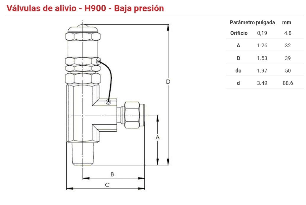Serie H900 de baja presión, válvula de alivio de acero inoxidable, Let-Lok de 1/4" x 1/4", sello de FKM fluorocarbono.